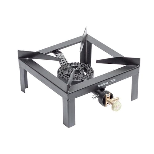 Fogão de alta pressão 1b queimador de ferro fundido Ideal para elaboração de cerveja artesanal. Fogão industrial dasshaus feito com ferro fundido 01 boca mesa na cor preta Sua cozinha industrial ou comercial ficará com muito mais qualidade com o fogão ferro fundido dasshaus Ele conta com dois queimadores simples em ferro fundido. Produzido em material resistente e pintura preta texturizada epóxi de alta resistência, é a peça fundamental para o desenvolvimento de uma refeição com qualidade. Ótimo para levar para seus passeios em família: Informações básicas Tipo: fogão industrial Modelo: 01 boca Cor: preto texturizado Características Estrutura: produzido com chapa de ferro, registro simples, grelhas em ferro fundido embutidas direto no fogão e trempes em ferro fundido Tipo de fogão: industrial Quantidade de bocas: 01 boca Tipo de chama: simples Tipo de queimadores: 01 - queimador simples Tipo de acendimento: manual Recursos: pintura preta de alta resistência ao calor, Pés: sim, porém usado em alguma bancada; Alimentação: gás Medidas aproximadas Largura do fogão: 24 cm Comprimento(com registro): 31 cm Altura do fogão: 13 cm Peso: 1,510kg
