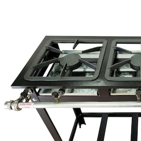 Ele conta com três grelhas de ferro fundido de 30x30 cm e três queimadores simples de 11cm cada. O fogão também possui um registro regulador de alta pressão, que facilita o controle da intensidade da chama, permitindo ajustar a temperatura de acordo com a necessidade do preparo dos alimentos. Um grande diferencial do Fogão Alcazon é que ele é totalmente desmontável. Isso facilita muito o transporte e armazenamento do produto, tornando-o uma opção prática e conveniente para diferentes necessidades e espaços. Além disso, o Fogão Alcazon acompanha um Kit Alta Pressão (Registro e Mangueira), proporcionando ainda mais praticidade e segurança no uso.