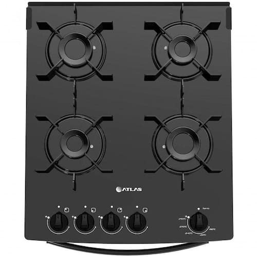 Fogão Atlas 4 Bocas Preto Mônaco Top Glass com Acendimento Automático - Bivolt
