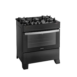 Além do visual moderno com puxador em alumínio escovado e botões removíveis, o modelo conta com um forno de 86,5 litros com porta de vidro duplo, 1 grade deslizante e acabamento Limpa Fácil, que facilita o dia a dia na cozinha.