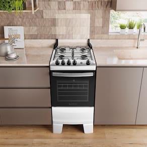 Material da mesa: Aço inox Tipo de acendimento: Automático Botões removíveis: Sim Forno: Limpa Fácil Número de prateleiras do forno: 2 Prateleiras do forno removíveis: Sim Luz no forno: Sim Porta do forno removível: Sim Trempes individuais: Sim Controle do painel: Mecânico Temperatura máxima do forno: 290?°C Classificação energética – Mesa: A Classificação energética – Forno: ATipo