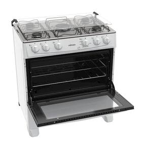 Trempe dupla, manípulos removíveis, pés robustos, vidro duplo na porta do forno, vidro interno removível, 2q ramal 1,7kw, 2q família 2,0kw, e 1q megachama 3,0kw.