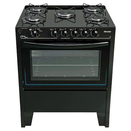 Características: Fogão Marca: Braslar Modelo: Fênix Glass Origem: Nacional Voltagem: Bivolt Tipo: Fogão de piso Acendimento: Automático Quantidade de bocas: 5 bocas Capacidade do forno: 72,2 Litros Material da mesa: Vidro Funcionamento: GLP Material das trempes: Arame fechado Tampa de vidro: Não Eficiência Energética: Mesa: A - Forno: B Potência dos queimadores: Família: 2 kW | Rápido: 3 kW | Ramal: 1750 W Frequência: 60 Hz Inmetro: Sim Luz no forno: Não Forno Autolimpante: Não Timer: Não Grill: Não Termostato: Não Forno duplo: Não Pés: Sim