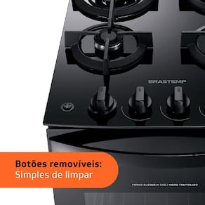 E mais! Este Fogão da Brastemp possui acendimento automático rápido e seguro, botões removeis fáceis de limpar e puxador do forno em alumínio escovado.
