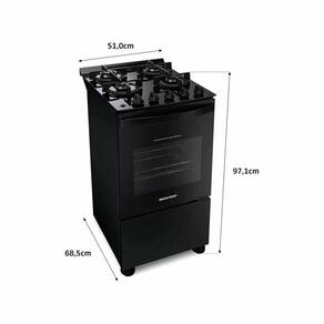Fogão 4 Bocas Brastemp Mesa de Vidro Toda conversa entre família e amigos sempre termina na cozinha para tomar aquele café da manhã ou da tarde. E para você que está mobiliando a sua cozinha ou precisa renovar os utensílios, precisa conhecer o Fogão de 4 bocas Brastemp BFO4VAE. Com mesa de vidro, possui acendimento automático, queimadores semirrápidos e forno de 61L que é esmaltado na parte interna e conta com vidro temperado na parte externa. Na cor preta, ele levará elegância e sofisticação para sua cozinha. As grades duplas de ferro fundido garantem robustez e segurança para os seus preparos.