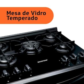 Fogão Brastemp 5 Bocas Mesa De Vidro e Turbo Chama Preto BFS5VCE - Bivolt