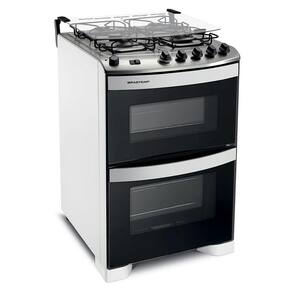 Fogão Brastemp Maxi Flat Top Piso 4 Bocas Branco Duplo Forno 127V BFD4NABNNA