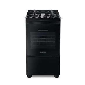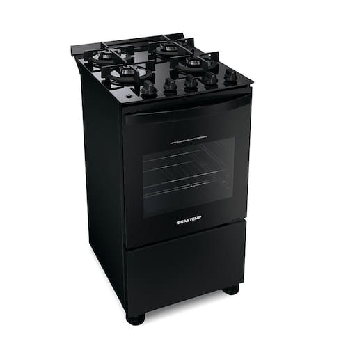 Fogão Brastemp Piso 4 Bocas com Mesa de Vidro e Grades Duplas de Ferro Fundido Preto Bivolt BFO4VAEAlta potência e performance em um fogão que permitirá muito mais possibilidades a sua cozinha. A Bratemp traz o fogão BFO4EBB para que tenha uma experiência exemplar ao preparar receitas para sua família.Com 4 bocas em inox com acabamento aço escovado e potências diferentes, garante não só máxima sofitsticação mas também versatilidade para que possa preparar não somente receitas que exigem altas temperaturas mas também aquelas que exigem um fogo delicado.Sua mesa é com acabamento em vidro temperado, trazendo modernidade até mesmo na hora de limpar. Suas grades duplas de ferro fundido garantem maior segurança e facilitam a limpeza que combinadas ao aro protetor dos botões que protege contra a entrada de sujeira, garante não apenas sofisticação mas também praticidade no dia-a-dia.Seu forno traz o melhor que um forno pode oferecer. Conta com duas prateleiras uma ajustável e uma auto deslizante facilitando a retirada de alimentos além de possibilitar o ajuste de altura. O vidro da porta, além de ser duplo, é vedado, evitando sujeira entre suas camadas, vidro, este que permite maior amplitude para a visualização e acompanhamento do prato durante o preparo. Já seu interior é feito com revestimento limpa fácil, esmaltado, evitando o acúmulo de sujeira e gordura nas paredes do forno.Especificações Técnicas:- Marca: Bratemp- Modelo: BFO4VAE- Voltagem: Bivolt- Funcionamento: A Gás- Tipo: Fogão De Piso- Acendimento: Automático- Cor: Preto- Capacidade do Forno: 61 Litros- Potência: 25W- Frequência: 60Hz- Classificação Energética: A- Número de Bocas: 4- Tipo de Gás: GLP/GN- Painel de Controle: Mecânico- Acabamento da Mesa: Inox- Porta Removível: Sim- Válvula Corta-Gás: Sim- Temperatura (Máx-Min): 160-280ºC- Tipo de Trempe: Dupla- Botões Removíveis: Sim- Tipo de Queimadores: Rápido 2500W e Semi Rápido 1800 - Limpa Fácil: Sim- Lâmpada Interna: Sim- Tipo de Prateleiras: Ajustáveis e Auto-Deslizantes- Número de Prateleiras: 2- Vidro Duplo: Sim- Vidro Interno Vedado: Sim- Material Puxador: Alumínio- Dimensões do Produto (LxAxP): 51 x 94,5 x 68,5 cm- Dimensões da Embalagem (LxAxP): 53,1 x 100,6 x 74,7 cm- Peso Líquido: 33,6kg- Peso Bruto: 38kg- Garantia: 12 Meses