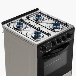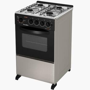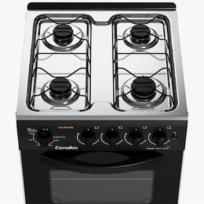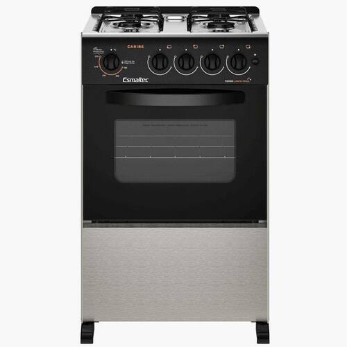 Características: Acendimento: Automático Potência dos Queimadores: 1 Queimador família 2,0kW e 3 Queimadores pequenos 1,7kW Forno Limpa Fácil Porta do forno: Vidro temperado Capacidade do Forno: 53,2 Litros Queimador do Forno: 2,20 kW de potencia Pés com novo design Marca: Esmaltec Modelo: Caribe 4112 Tipo: Piso Mesa: Inox Quantidade de queimadores: 4 Capacidade em volume do forno: 53,2 litros Com pés: Sim Com Tampa: Não