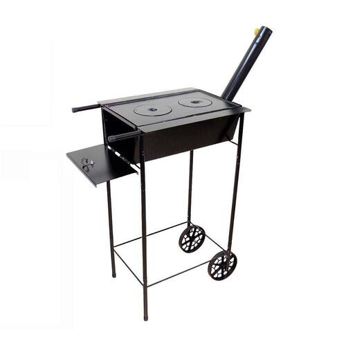 O fogão a lenha portátil e churrasqueira Mineiro deixou de ser um item que confere apenas um sabor diferenciado às comidas. Esse modelo também confere às famílias as mais variadas vantagens, como garantir maior economia de energia elétrica e gás de cozinha, diminuir a poluição, além de decorar os espaços com muito mais charme. É ideal para assar frango, carnes, aves e peixes. Projetada para ambientes externos e internos como quintais, camping, áreas de piscina, praias, varandas entre outros. Saída de fumaça embutida e removível. Leve, prático para transportar, guardar e limpar. Carrinho com rodas para facilitar o transporte.