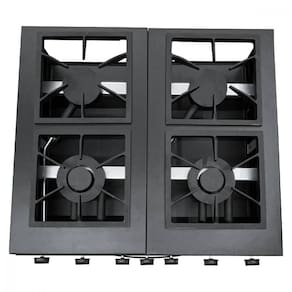 As trempes de ferro fundido 300x300mm e os espalhadores e bases dos queimadores também em ferro fundido garantem máxima resistência, estabilidade para suas panelas e uma longa vida útil ao fogão.
