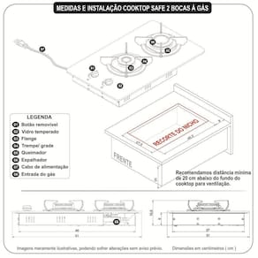 Dimensões do nicho para instalação (cm): A: 2,0 x L: 46,5 x P: 27,5