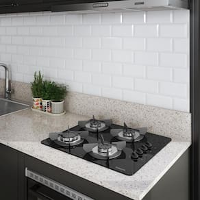 Cooktop Fogatti 4 bocas com mesa de vidro temperado, trempes em ferro fundido esmaltado, acendimento automático inteligente e sistema de combustão italiano.Alimentação