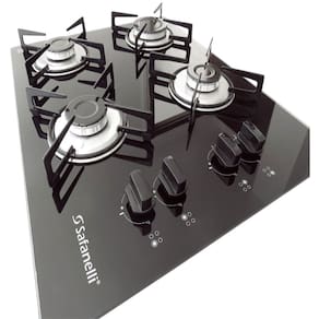 Características: Marca: Safanelli Modelo: Semplice Cooktop 4 bocas. 3 semirrápido 1.750w e 1 rápido 3.000w. Vidro temperado de 6mm Acendimento super automático Cordão selador de vedação Trempes individuais com borracha suporte queimador em aço inox Gás GLP Aprovado pelas normas do INMETRO, portaria 400 Classe A