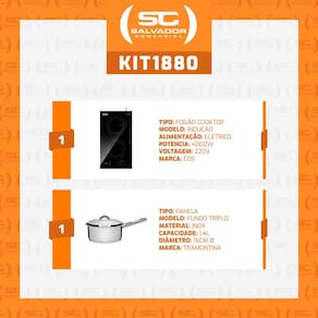 Fogão Cooktop De Indução 2 Bocas Elétrico Eci02ep 220V E Panela Inox Solar 16cm Pit7 - Eos