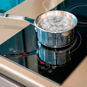 Fogão Cooktop de Indução 2 Bocas EOS, com Turbo Power, controle de temperatura, Safety Lock, 10 níveis de potência, vidro Full Glass, função timer e design compacto. Inclui panela inox Tramontina.Luz de calor residual