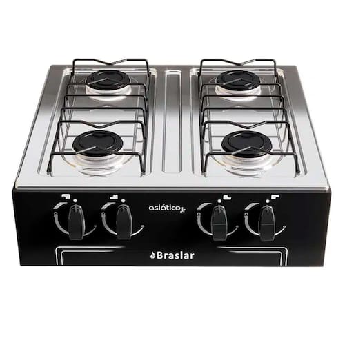 Fogao Cooktop de Mesa Portatil a Gas 4 Bocas Braslar Asiatico Junior