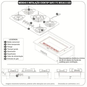 Potência dos queimadores: Queimador Semirápido: ; Queimador Rápido: ; Queimador Tripla Chama: