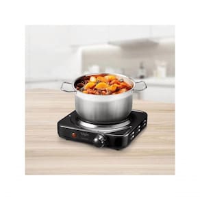 Fogão cooktop elétrico portátil Elgin com 1 boca de 1000W, 5 ajustes de temperatura, compatível com qualquer tipo de panela, indicação luminosa de aquecimento e termostato.Luz de calor residual