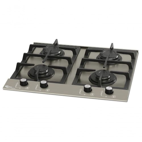 Fogão Cooktop Fischer 4 Bocas Platinium Prime Escovado 20874-51521 Fogão Cooktop Fischer 4 bocas Platinium Prime Escovado 20874-51521 Bivolt - Características Gerais do Produto: - Acendimento: Superautomático - Classificação eficiência energética: B - Consumo de gás: 0,691 Kg/h - Corrente: 0,04A (127V); 0,085A (220V) - Dimensões da embalagem (cm): A: 15 x L: 68 x P: 60,5 - Dimensões do nicho para instalação (cm): L: 55,5 x P: 48,5 - Dimensões do produto (cm): A: 13 x L: 59 x P: 52,2 - Grades de mesa (quantas): 02 Trempe dupla - Material da grade: Ferro Fundido Esmaltado - Material da mesa: Prime (Liga Especial Metálica) - Material dos queimadores: Aço Esmaltado - Observações: Produto Certificado pelo INMETRO (Portaria 400) - Potência dos queimadores: Semirrápido: 1.750W; Tripla Chama: 3.000W - Potência sistema elétrico: P= 5W e P= 18.5W Máximo - Pressão do gás: GLP 27,5 mbar = 2,75 kPa e GN 20 mbar = 2,0 kPa - Tensão: 127V - 220V (Bivolt) - Tipo de controle: Botões Frontais - Tipo de gás: GLP ou GN (Sai da fábrica GLP: primeira conversão dentro da garantia) - Tipo de queimadores: 2 Queimador Ultra Chama; 2 Queimadores Semirrápidos - Modelo: Embutir - Modelo referência do produto: 20874-51521 - Atenção: Quando instalar o cooktop, não esquecer: Verificar a validade da válvula reguladora de pressão do gás. A mesma deve estar instalada na saída do botijão de gás ou na tubulação antes da saída para o cooktop. Nesta válvula deve constar a gravação do código NBR 8473 do INMETRO e o prazo de validade. O plugue do cabo de alimentação de seu produto está em conformidade com a NBR 14136/2002 do Inmetro e deverá ser mantido. Acompanha o produto: - Manual de Instruções - 04 tiras de espuma para vedação Garantia: - 12 Meses de Garantia de Fábrica