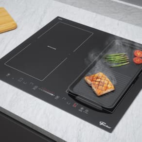Cooktop Fischer por indução com 4 queimadores Smartzone, 9 níveis de potência + Booster, display digital, slider touch control, trava de segurança, função manter aquecido, função pausar, sistema indicador de superfície quente e sensor de panela. Modelo Smartzone, 220V.Luz de calor residual