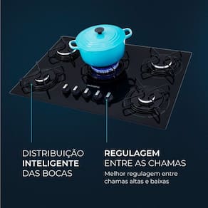 - Controle Entre as Chamas: Registros com sistema By Pass que permitem melhor regulagem de chamas altas e baixas.