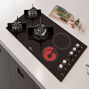 Fogão Cooktop Top 5 Queimadores A Gás E Elétrico Fischer Preto 220v Criado para oferecer uma opcao a mais ao mercado de cooktops, o Fogao cooktop TOP 5 Queimadores de Embutir da Fischer possui mesa vitroceramica 4mm, 1 queimador tripla chama de 3700W, 1 queimador rapido de 2900W e 1 queimador semirrapido de 1630W, todos com trempes individuais em ferro fundido. Possui, ainda, 2 queimadores eletricos (com 1200W e 1800W). Apresenta um sistema de leds, que indica temperaturas iguais ou acima de 50C na mesa, garantindo maior seguranca. Apresenta manipulador de metal com acendimento ergonomico, limpeza facil e uso simplificado. Caracteristicas: -Mesa vitroceramica preto ebano -1 queimador eletrico (1800W) -1 queimador eletrico (1200W) -Acendimento superautomatico -9 niveis de potencia -Fischer TEC - sistema de LEDs que indica que a regiao do queimador em uso esta com temperatura superior a 50C