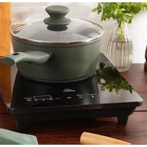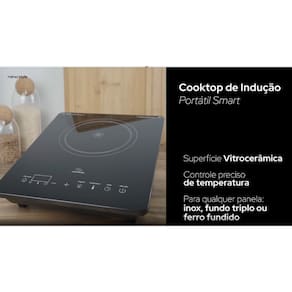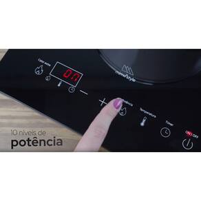 Fogão cooktop digital de indução 1800W, portátil, com painel de controle intuitivo e ajuste de temperatura.Alimentação