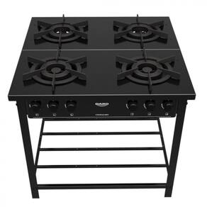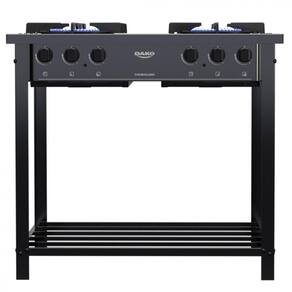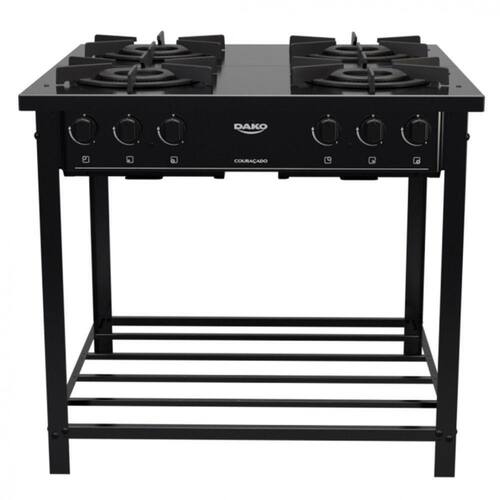 O novo fogão industrial Dako Couraçado conta com mesa em aço esmaltado com revestimento Limpa Fácil; ignição manual; 2 queimadores com duplo controle e Tripla Chama de 5,2kW; grades extra largas e robustas de ferro fundido com 6 pontos de apoio, que suportam grandes panelas; bandeja coletora de resíduos; base chapada para armazenamento e suporte; além de possuir pés removíveis, que permitem que o fogão seja utilizado tanto da forma , quanto em bancadas.