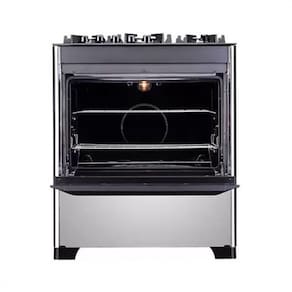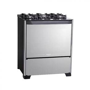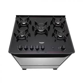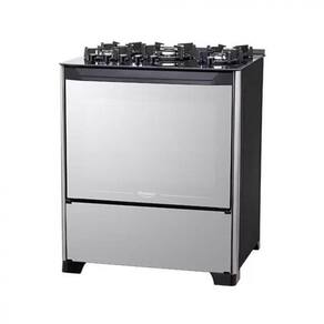 Design moderno com frente em vidro espelhado, mesa de vidro top control, acendimento automático, grades de ferro fundido com 6 pontos de apoio - que proporcionam maior segurança e firmeza para as panelas, bordas laterais em inox, puxador amplo e ergonômico e pés robustos.