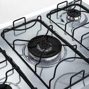 A versão 5 bocas possui Tripla Chama que oferece mais agilidade no preparo, enquanto as grades duplas de aço oferecem firmeza e estabilidade para suas panelas.