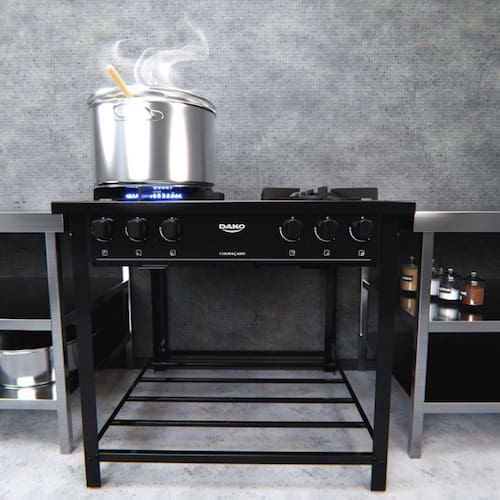 Característica: Grades extras robustas em ferro fundido com 6 pontos de apoio. Queimadores potentes: frontais com dupla chama e traseiros com chama simples Mesa com esmaltação limpa fácil: para facilitar a limpeza, a gordura não gruda Versão com forno: na versão 4 bocas é possível adicionar um amplo forno com capacidade de 102 litros, duas grades e acabamento limpa fácil. Com todo esse espaço é possível assar várias receitas ao mesmo tempo Dupla chama nos queimadores frontais com duplo controle e chama simples nos queimadores traseiros Grades extra robustas em ferro fundido com 6 pontos de apoio Bandeja coletora de resíduos Ignição manual Base em treliça para armazenamento