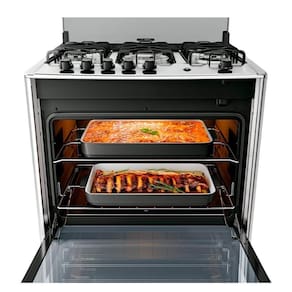 Queimadores: 1 Tripla Chama (3,3kW), 2 Família (2,0kW), 2 Médios (1,7kW)