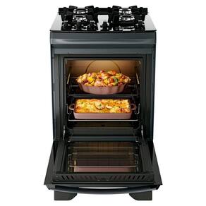 O puxador em alumínio escovado, além de ergonômico, traz sofisticação ao design do fogão. Com duas prateleiras deslizantes: a inferior facilita a retirada dos alimentos, enquanto a superior, com altura ajustável, se adapta às necessidades de cada preparo. O visor amplo do forno permite acompanhar o preparo sem precisar abrir a porta e o acabamento Limpa Fácil deixa a limpeza ainda mais rápida e descomplicada.