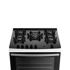 Desenvolvido para elevar o padrão do preparo culinário, o fogão dispõe de 5 bocas alimentadas a gás com acendimento automático, garantindo praticidade e . Sua mesa em vidro, reforçada com trempe em ferro fundido e apoio em 6 pontos, complementa o visual moderno enquanto assegura durabilidade. Os manípulos Top Control, de formato redondo e removíveis, proporcionam um controle intuitivo.