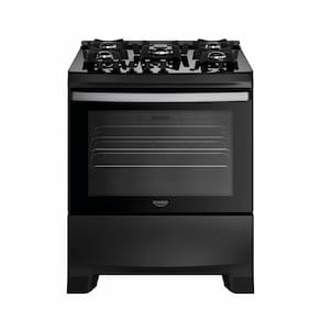Tipo: Fogão de PisoAlimentação: GásTensão: BivoltMesa: Mesa de vidro, trempe de ferro fundido, trempe de apoio seis, acedimento automáticoManípulos: quantidade 5, tipo queimador em alumínio jateado e escovado com capa esmaltada, tripla chama 3,3 kW, família 2,0 kW, semi-rápido 1,7 kW e potência 10,7 kW. Forno: Capacidade de 100 litros, alimentação a gás, potência do forno 2,65 kW, com acabamento interno do forno esmalte limpa fácil, prateleiras 2 unidades deslizantes, luz no forno, porta do forno em vidro temperado, puxador grande em alumínio extrudado, visor porta do forno total e forno com válvula de segurança do forno.Extra: Atributos e benefíciosDimensões do produto
