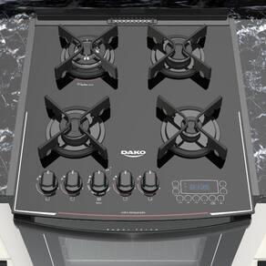O Fogão de Embutir Dako 4 Bocas Mesa de Vidro Bivolt Turbo Glass traz modernidade para sua cozinha planejada. Com um toque no Display Digital, você controla o tempo de desligamento do forno e do grill. O forno, aliás, é um show à parte. Com a tecnologia Turbo Convecção, prepare duas receitas ao mesmo tempo, sem interferência de sabores e aromas.