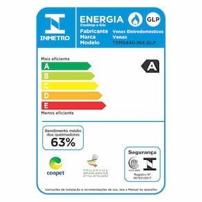 Potência Queimadores Mesa: 2,80 kW(Queim.Grande); 1,75 kW(Queim.Médio)