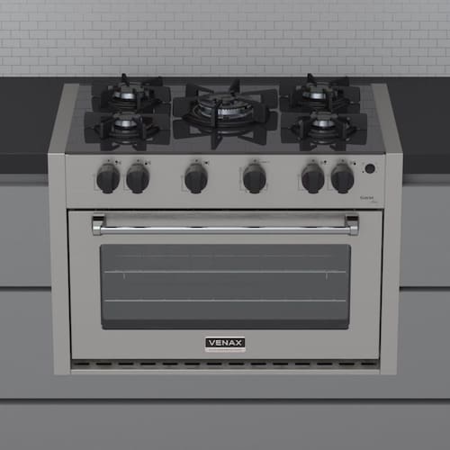 Tipo: Fogão de Embutir Acendimento: Automático Queimadores: 1 Tripla Chama, 2 Grandes e 2 Médios Trempe dos Queimadores: Individual Ferro Fundido Esmaltada Mesa Queimadores: Vidro Preto Base das Trempes: Esmaltada na Cor Preto Botões: Removíveis Válvula de Segurança: Sim Luz no Forno: Sim (Lâmpada não acompanha o produto) Prateleiras do Forno: Duas Auto Deslizantes Revestimento do Forno: Esmalte Easy Clean Temperatura: 5 posições de 180C Até 290C Função Grill: Não Timer Grill: Não Timer Gás: Não Espeto Giratório: Não Bandeja Coletora de Resíduos: Não Porta Removível: Sim Porta do forno: Vidro Panorâmico Vidro Duplo na Porta: Sim Puxador da Porta: Aço Cromado Entrada de Gás: Uma Entrada(Lado Esquerdo Visto de Frente) Marca: Venax