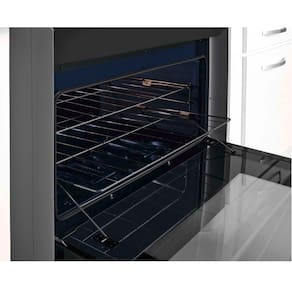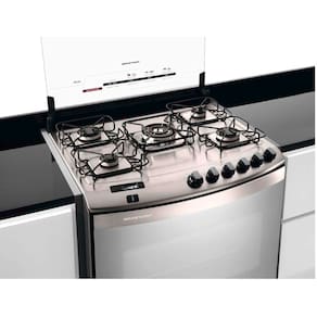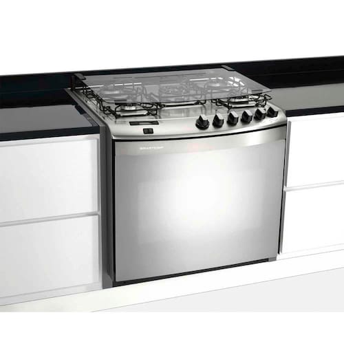 Conta com vidro amplo no forno, uma de suas prateleiras é deslizante para dar mais segurança ao manuseio de formas e assadeira e ainda conta com revestimento que impede o acumulo de gordura e facilita sua limpeza.