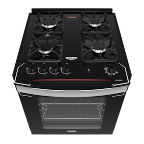 Elegante, ele possui mesa de vidro, o que facilita na hora da limpeza. Suas trempes, as grades do fogão, são individuais e confeccionadas em ferro fundido, com 8 pontos de apoio. Isso dá maior segurança para suas panelas, pois evita o deslizamento.