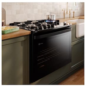 Fogão de embutir Electrolux 5 bocas com mesa de vidro temperado, forno de 108,9 litros, acendimento automático, timer, grill, VaporBake e PerfectCook360.Alimentação