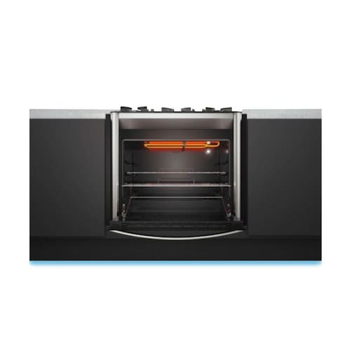 - Fogão com 5 queimadores: 1 queimador tripla chama ( 3750W) 1 queimador rápido (2850W), 3 queimadores semirrápidos (1950W)