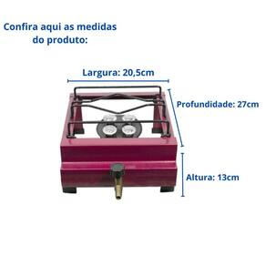 Cor: Pintura Eletrostática Cor Vinho Material da Estrutura: Chapa de Ferro Queimadores: Chapa de Ferro com Pintura Eletrostática com 4 queimadores Caulins Grelha: Ferro Espessura 4mm Medidas Grelha: 15,5x18,3cm Acompanha: Pés de Borracha de Alta Resistência, Mangueira e Registro.