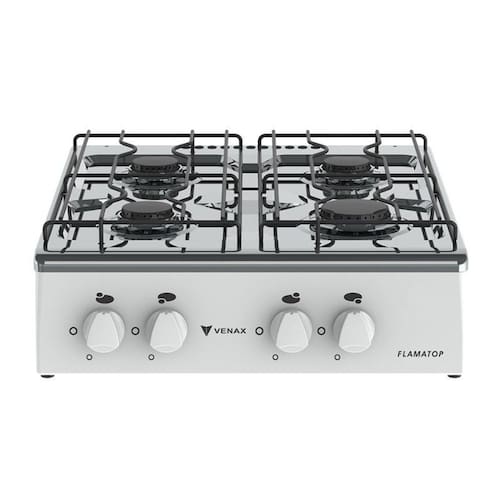 Tipo: Fogão Portátil Acendimento: Manual Queimadores: 1 Grande e 3 Médios Trempe dos Queimadores: Esmaltadas Mesa Queimadores Inox Tampa da mesa: Não Botões: Removíveis Entrada de Gás: Uma Entrada (Lado esquerdo visto de frente) Marca: Venax