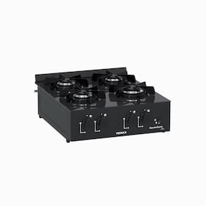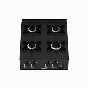 Fogão de mesa portátil com 4 bocas, trempes esmaltadas, mesa de vidro preto, acendimento automático e alimentação a gás GLP.Luz de calor residual
