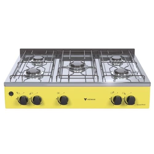 Tipo: Fogão Portátil Acendimento: Automático Queimadores: 3 Grandes e 2 Médios Trempe dos Queimadores: Esmaltadas Mesa Queimadores Inox Tampa da mesa: Respaldo Botões: Removíveis Entrada de Gás: Uma Entrada (Lado esquerdo visto de frente) Marca: Venax