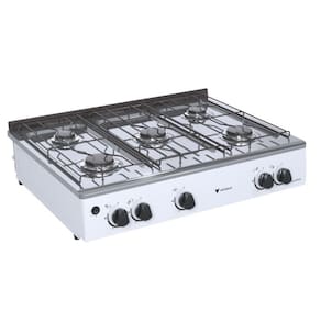Tipo: Fogão Portátil Acendimento: Automático Queimadores: 3 Grandes e 2 Médios Trempe dos Queimadores: Esmaltadas Mesa Queimadores Inox Tampa da mesa: Respaldo Botões: Removíveis Entrada de Gás: Uma Entrada (Lado esquerdo visto de frente) Marca: Venax