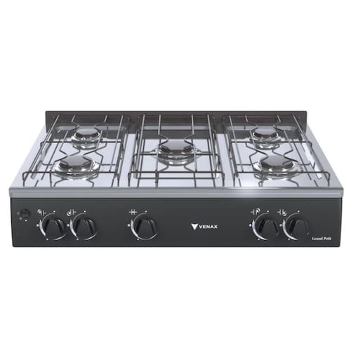 Tipo: Fogão Portátil Acendimento: Automático Queimadores: 3 Grandes e 2 Médios Trempe dos Queimadores: Esmaltadas Mesa Queimadores Inox Tampa da mesa: Respaldo Botões: Removíveis Entrada de Gás: Uma Entrada (Lado esquerdo visto de frente) Marca: Venax