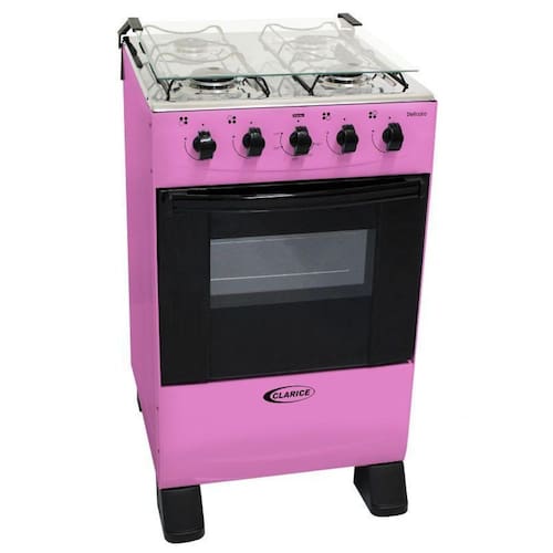 Fogão de Pé Clarice Delicato 4 Bocas Rosa forno 52L - Mesa em aço inox - Tampa de vidro - Queimadores estampados - Puxador de metal - Amplo visor do forno - Porta do forno mista em vidro duplo - Grade fixa com opção de altura - Trempes esmaltada - Forno limpa fácil Easy clean - Dimensões internas do forno 39x45x29 - Capacidade do forno 52L - Pé clicado - Válvula de segurança no forno - Queimador rápido 1/1,6kw - Queimador semi rápido 3/ 1,5kw - Potência do queimador do forno 3,0kw - Temperatura do forno 180º a 270º